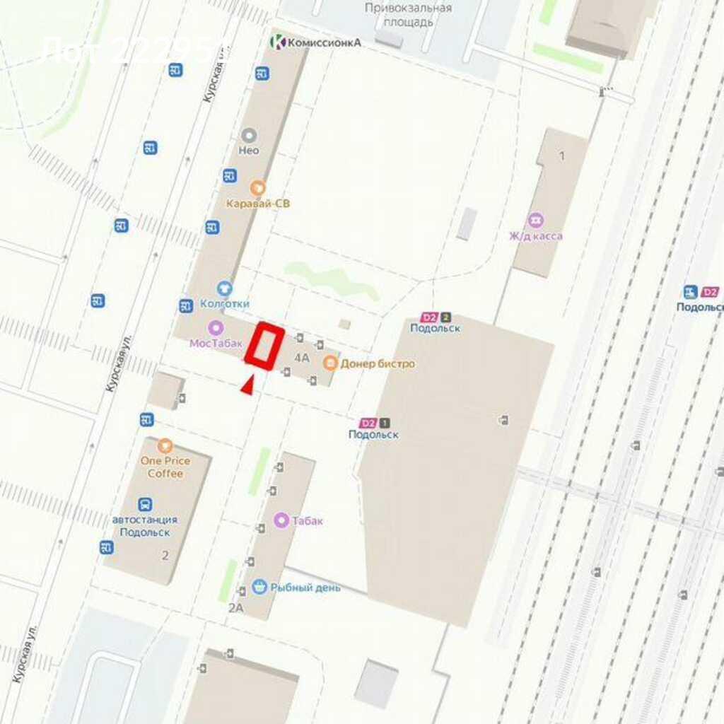 Лот № 222951 Габ, ж/д станция Подольск, 47 м Готовый арендный бизнес! Продаётся нежилое помещение на Вокзальной площади (в собственности). Огромнейший пешеходный трафик 24/7. Все, кто идут на Мцд или обратно — проходят мимо входа. Павильон разделён на две части. Одну часть помещения занимает «Билайн» (уже более 10 лет). Вторую — кофейня «One Priсe Сoffee» (почти 2 года). Планировка фотографиях. Суммарный месячный арендный поток составляет 612 000 руб. Окупаемость 4 года. Коммуникации: электричество — есть, водоснабжение — нет, отопление — электрические конвекторы. Коммунальные услуги не входят в стоимость аренды и возмещаются арендаторами отдельно. 3